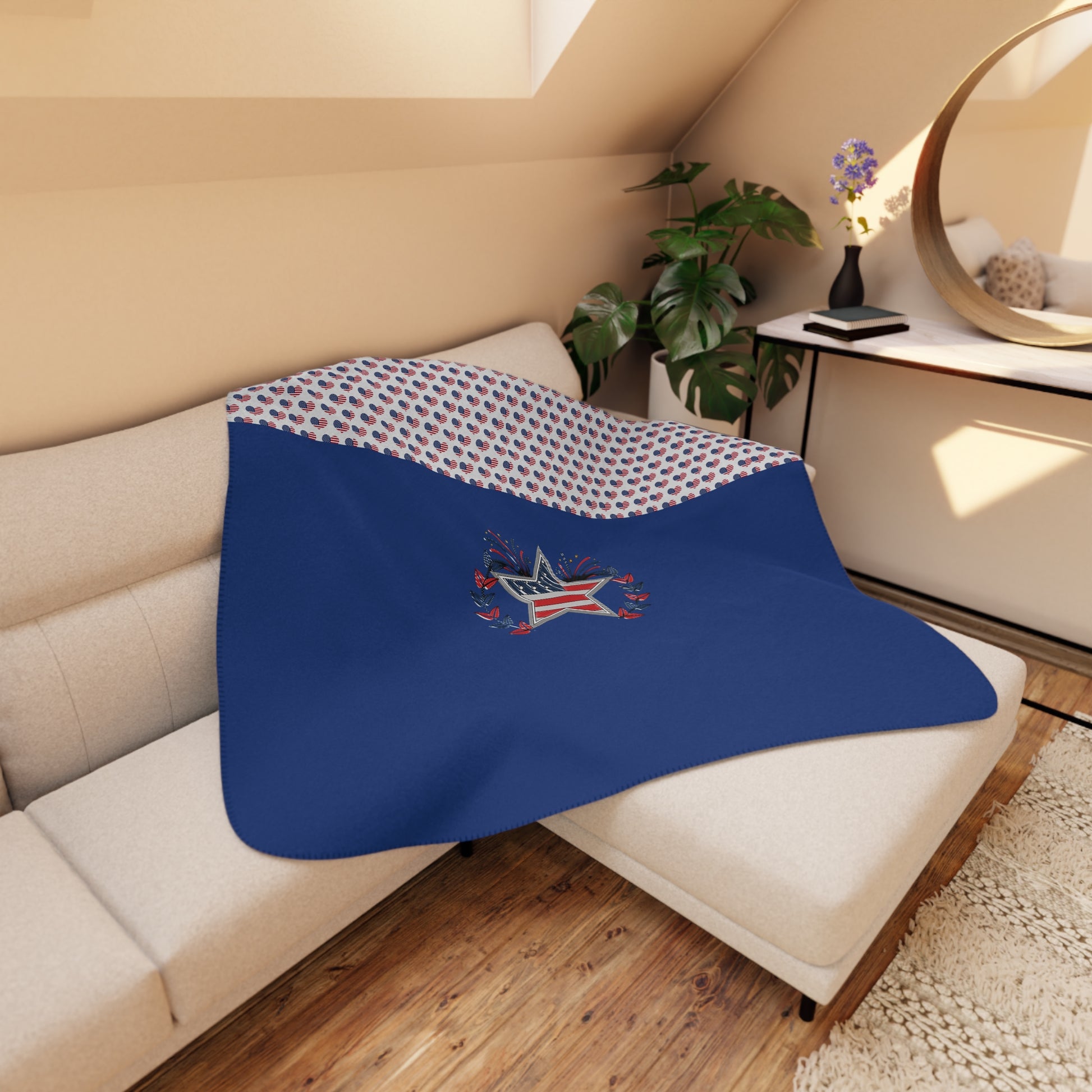 Keep it cozy all year round with this super-soft sherpa blanket. Great for snuggles by the fireplace, picnics, and a quick power nap. Print high-definition designs on the 100% poly front to keep it personal. The back has a tan sherpa lining. Rounded corners and decorative stitching keep everything sleek and smooth.