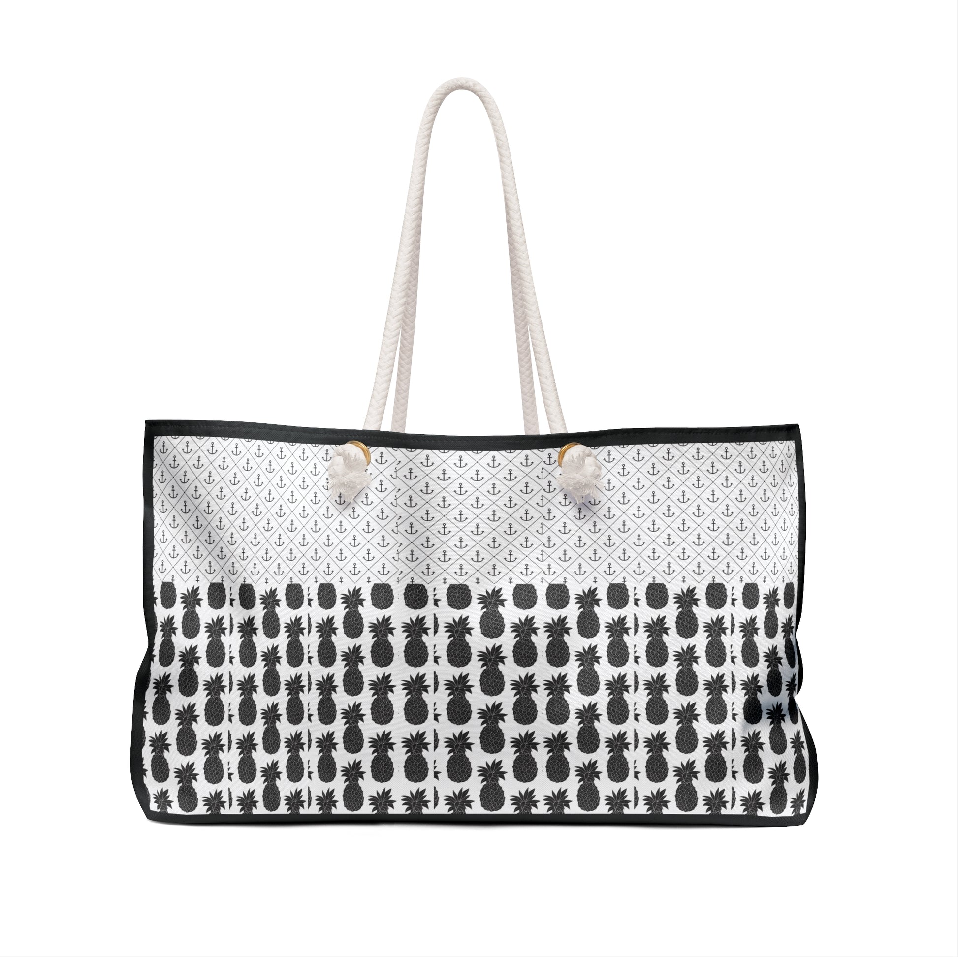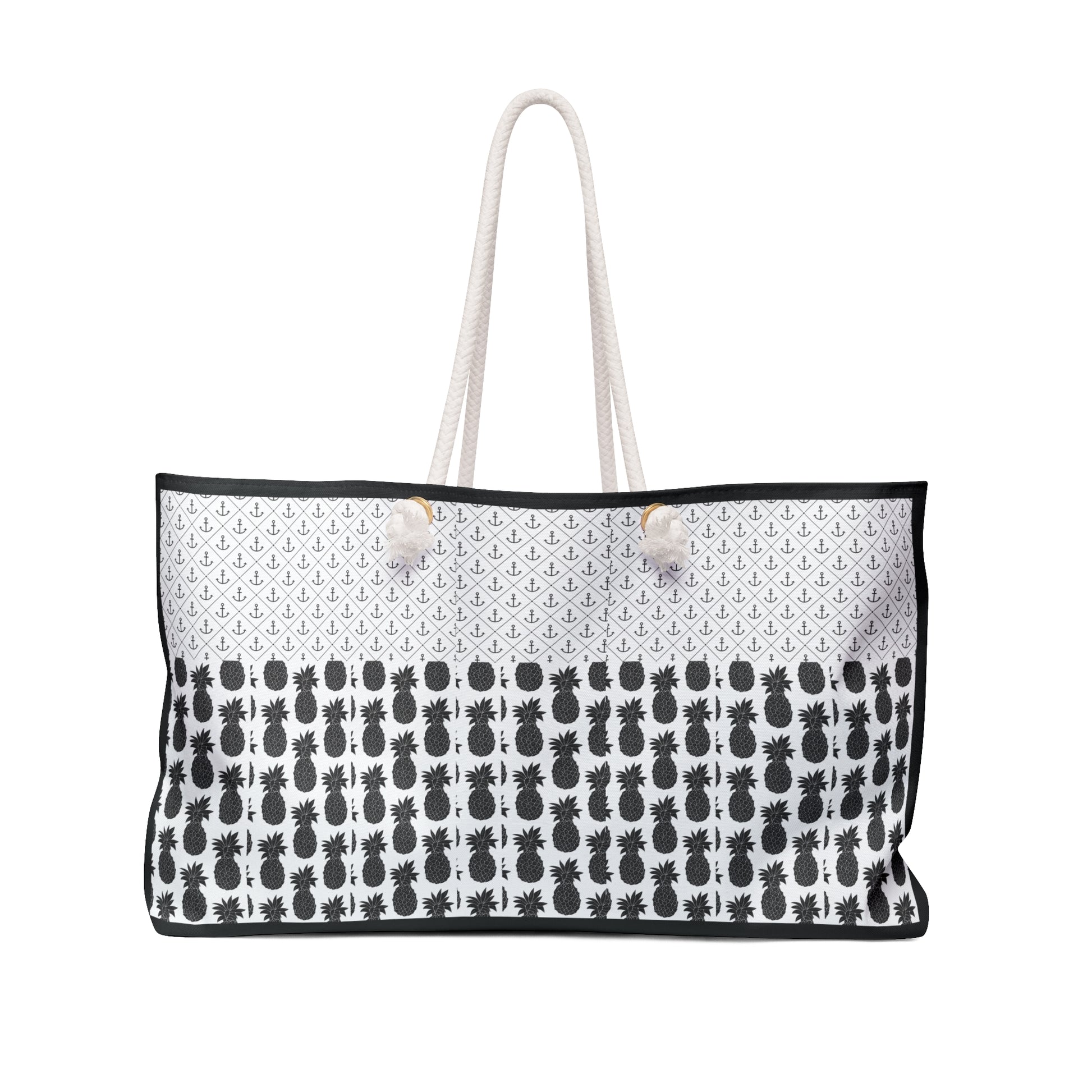 Our oversized Weekender Tote is perfect for your weekend at the beach or in town. The wide-mouthed, durable bag holds a generous amount of personal items and is easily held by its thick rope handles.