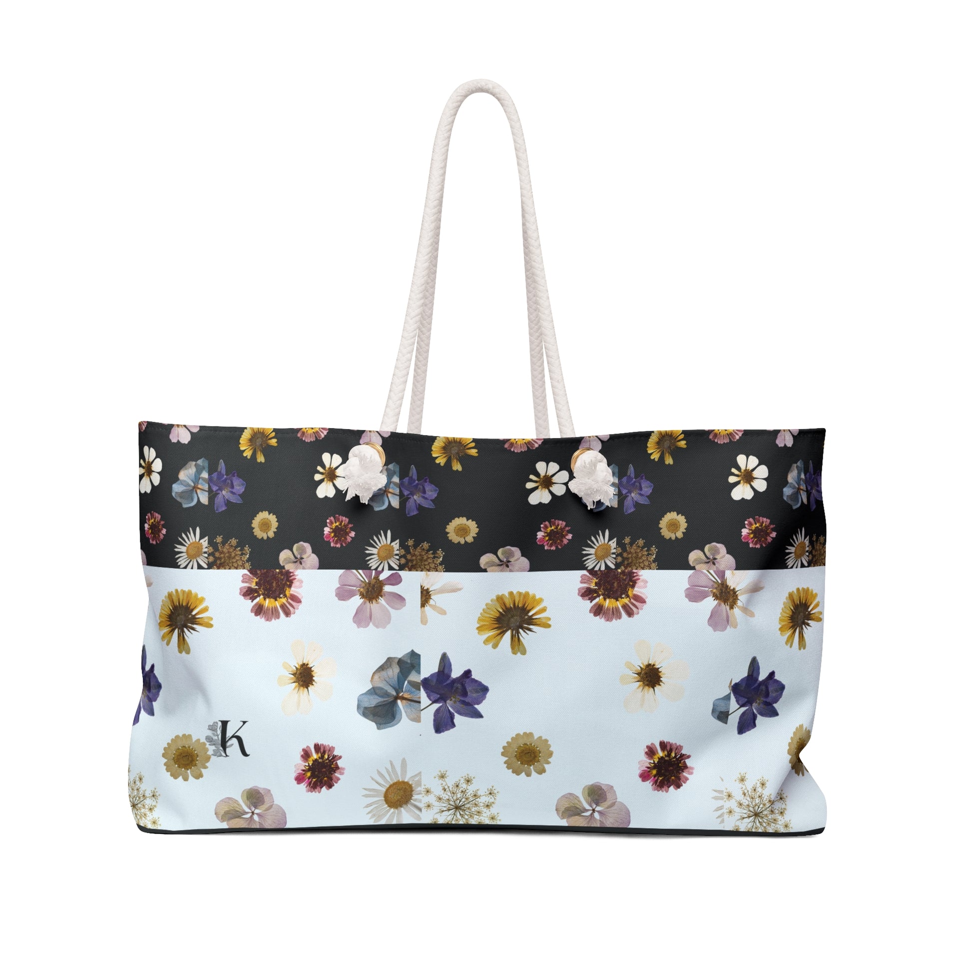 Our oversized Weekender Tote is perfect for your weekend at the beach or in town. The wide-mouthed, durable bag holds a generous amount of personal items and is easily held by its thick rope handles.